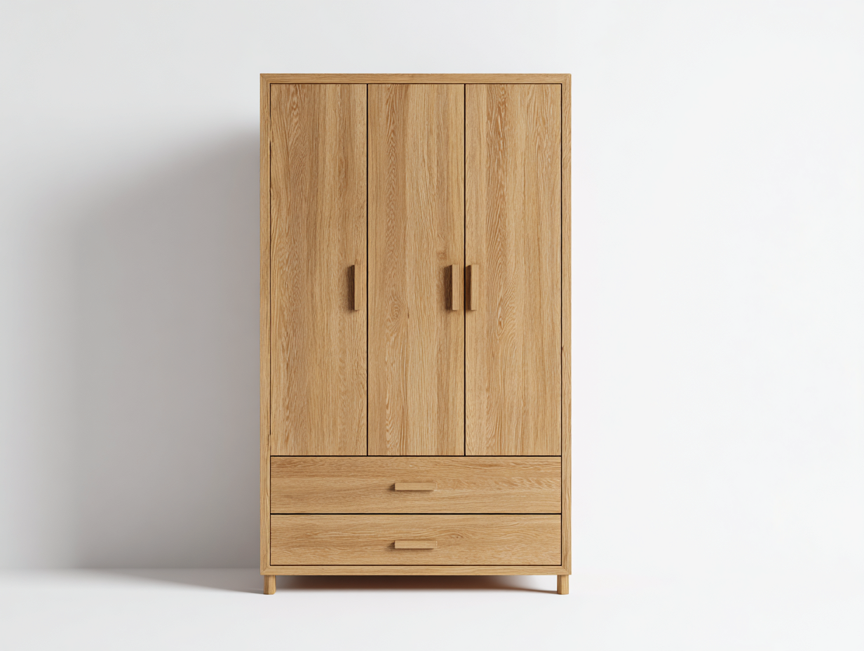 Armoire en bois naturel à portes pleines – style minimaliste