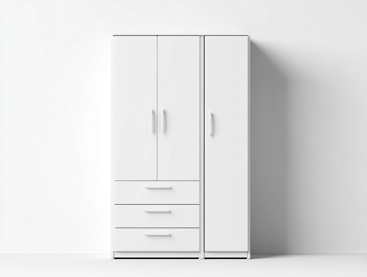 Armoire blanche avec portes et tiroirs latéraux – style moderne