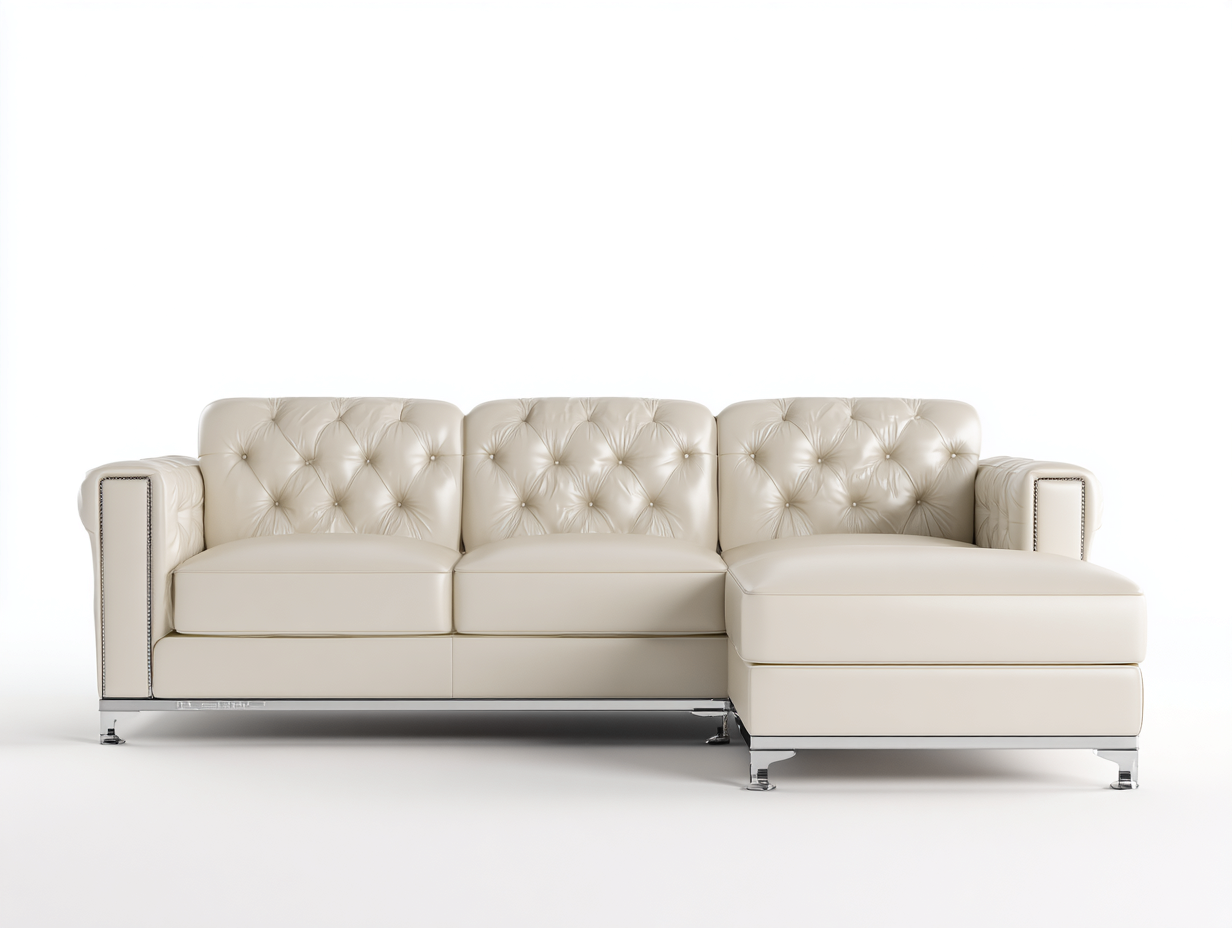Canapé d’angle en cuir beige capitonné – style moderne