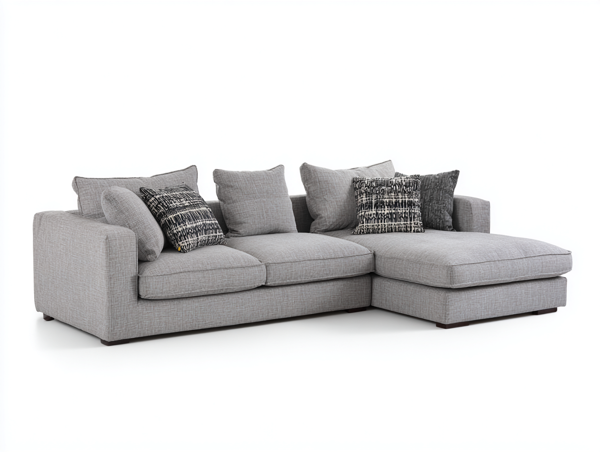 Canapé d’angle en tissu gris avec chaise longue – style contemporain
