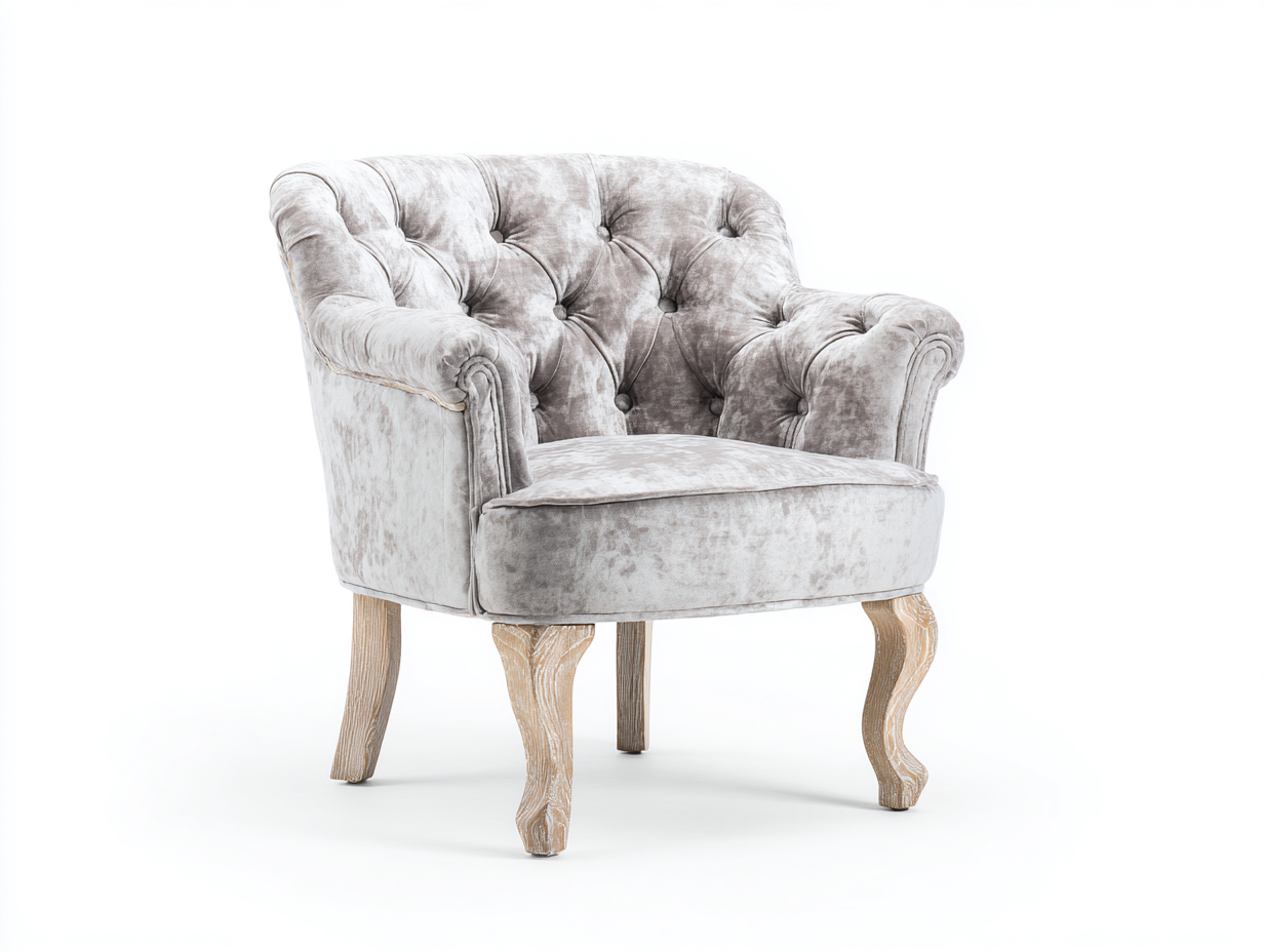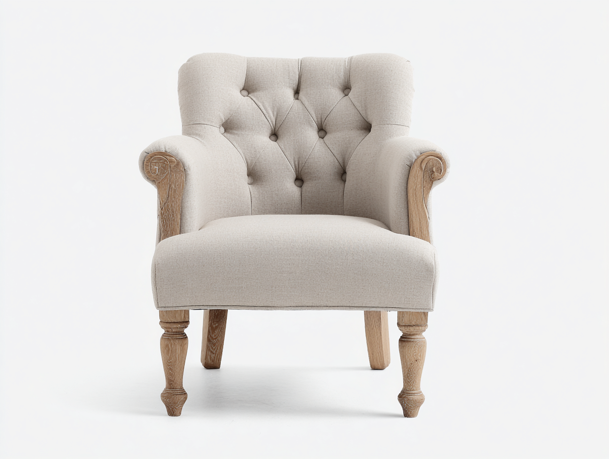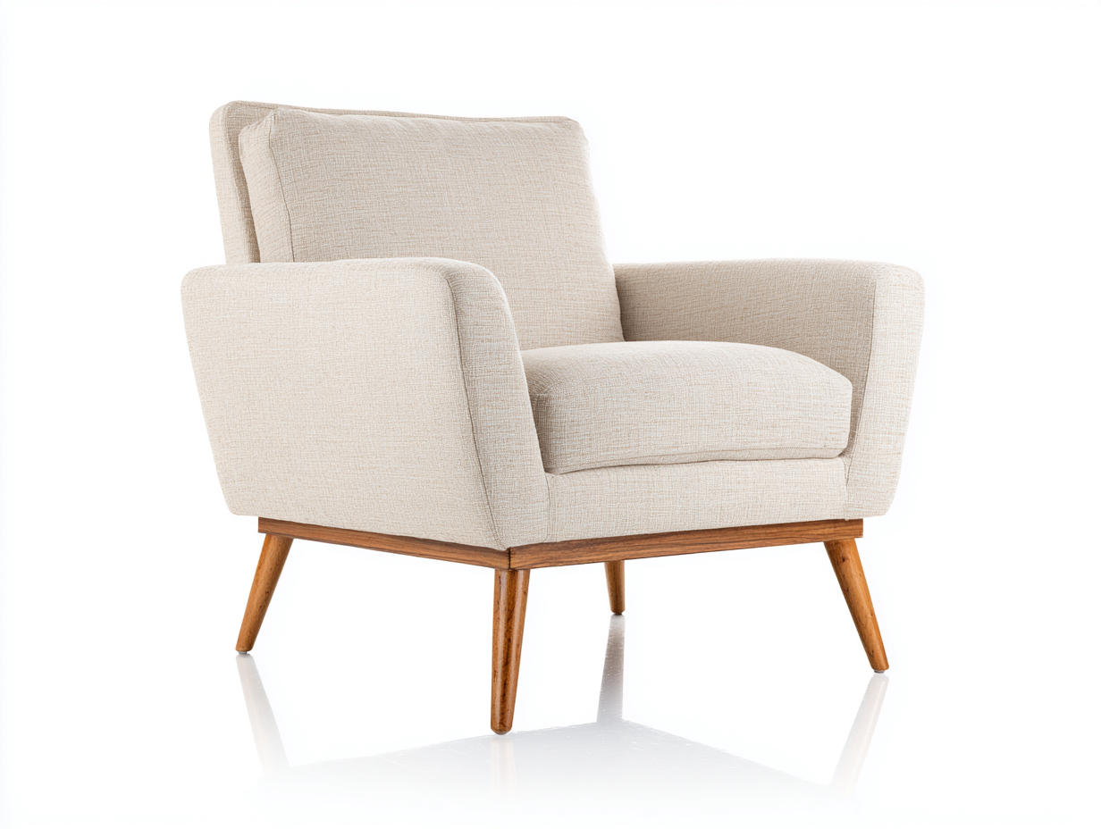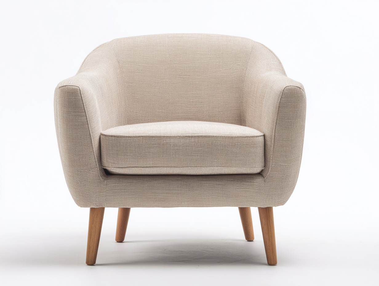 Fauteuil en tissu beige avec pieds en bois – style contemporain