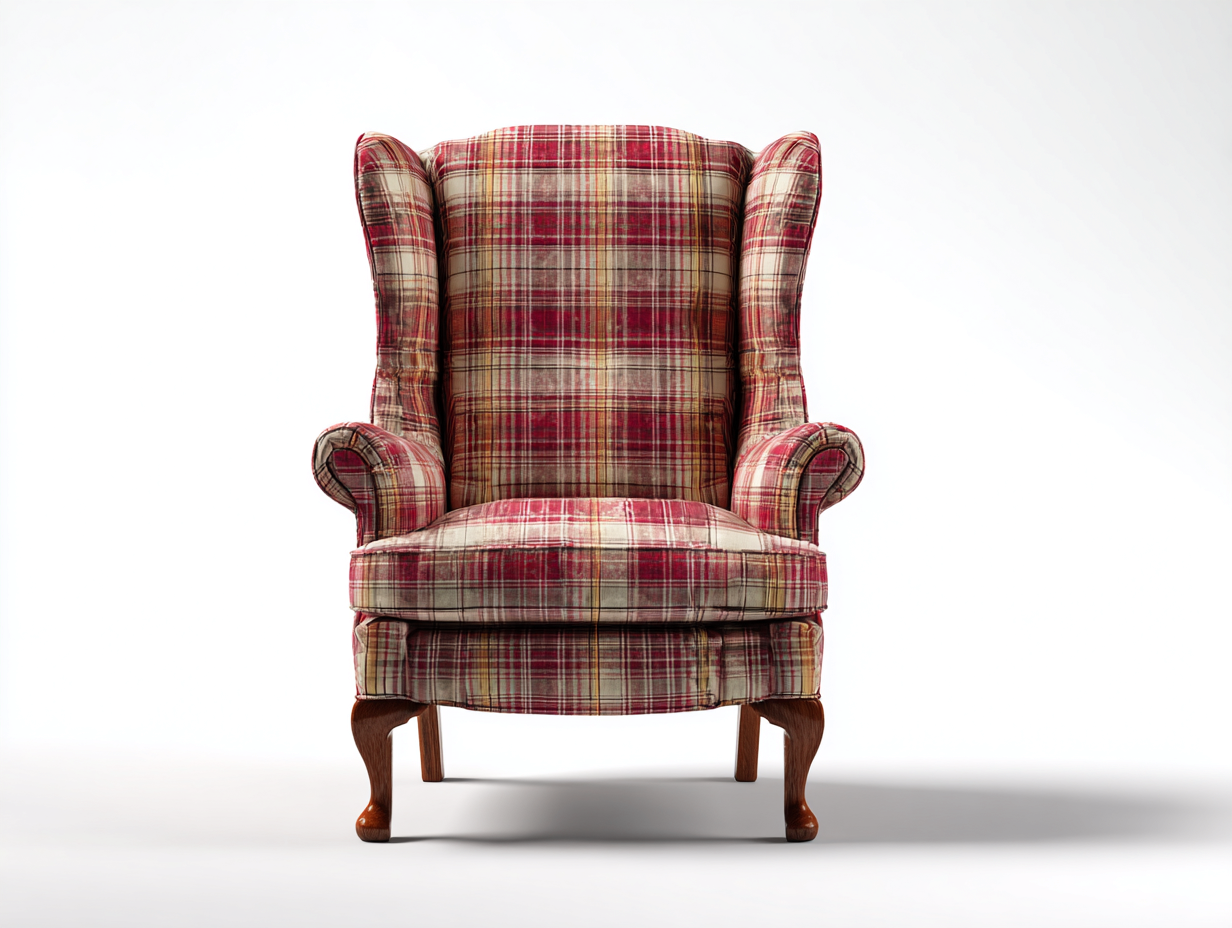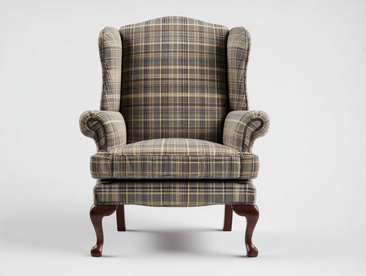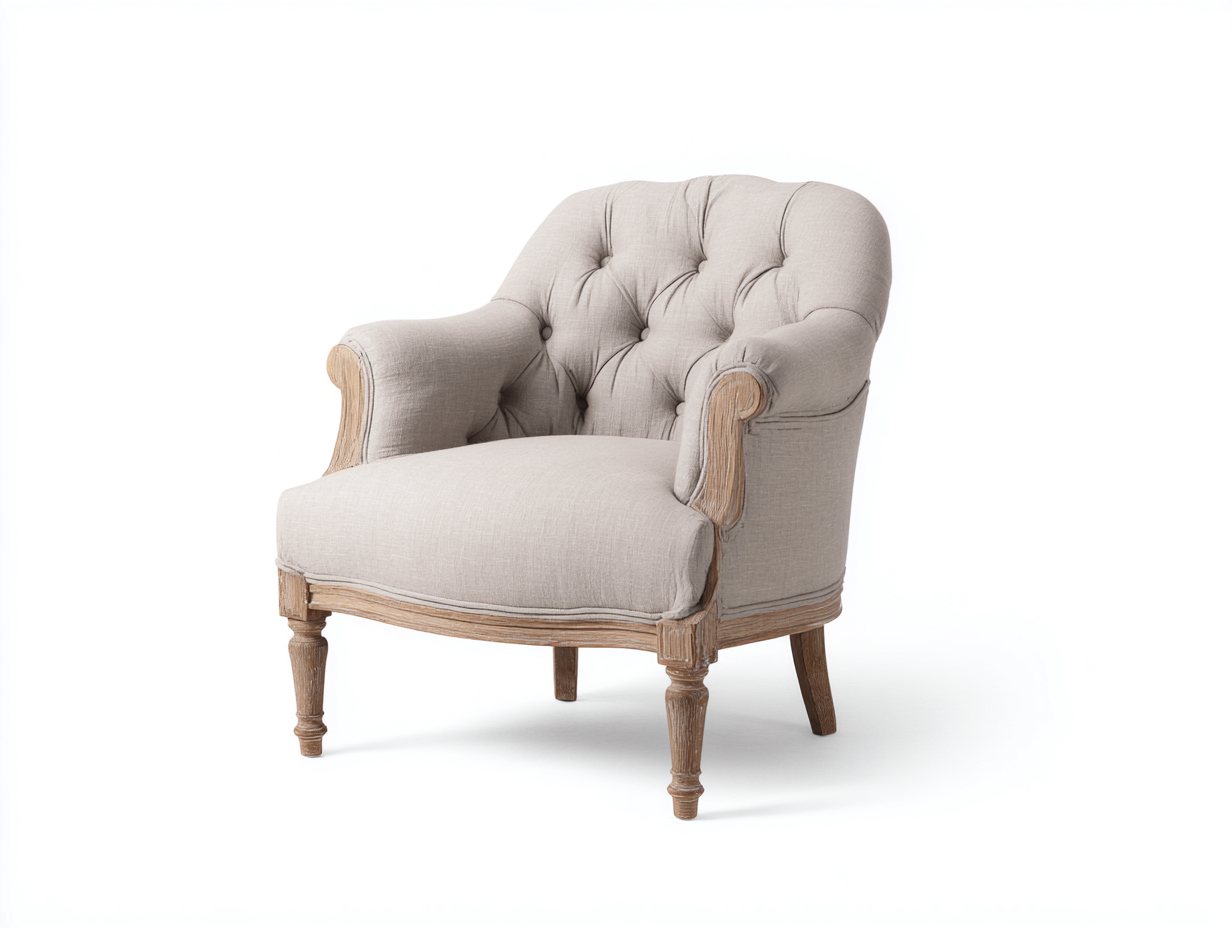 Fauteuil en tissu beige avec dossier haut – style classique