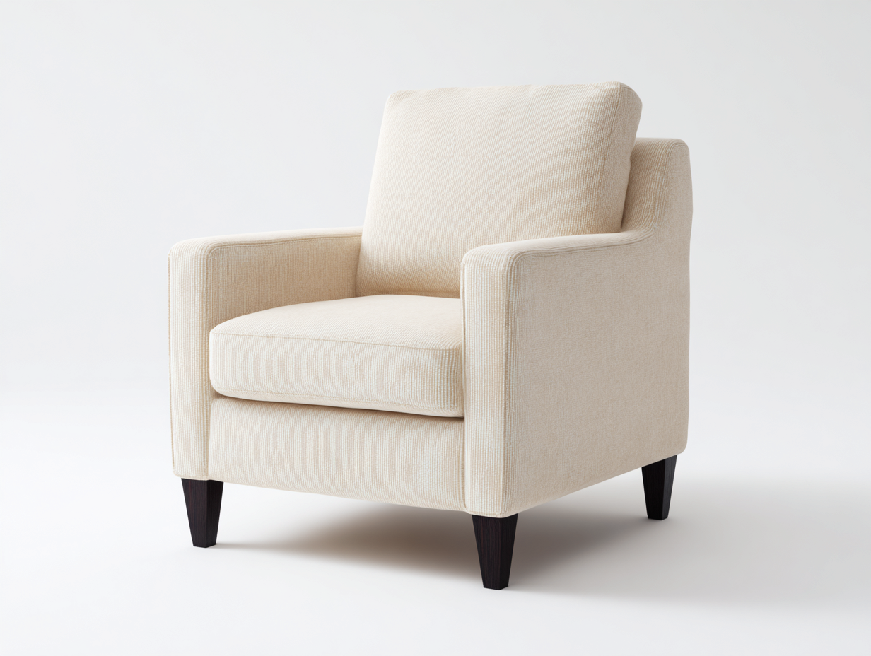 Fauteuil en tissu beige à lignes épurées – style moderne